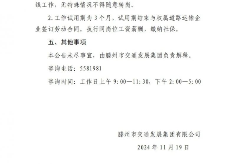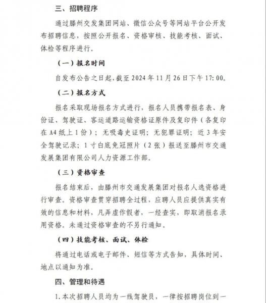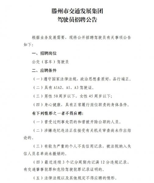 滕州市交通發(fā)展集團(tuán)駕駛員招聘公告