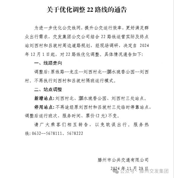 關(guān)于優(yōu)化調(diào)整22路線的通告
