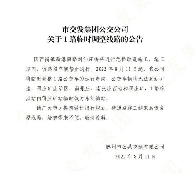 關(guān)于1路臨時調(diào)整線路的公告