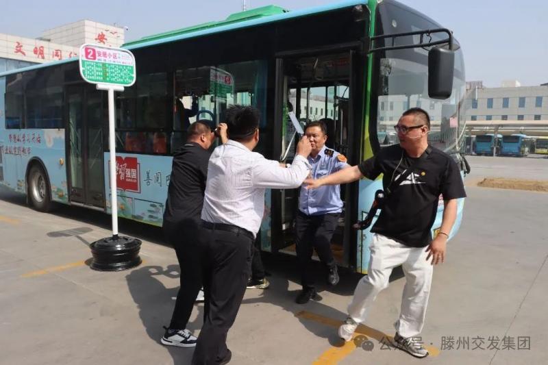 模擬公交駕駛員發(fā)現(xiàn)乘客帶有不明物品乘車,乘客不配合正常安全檢查,欲強(qiáng)行乘車,并與駕駛員發(fā)生爭執(zhí),駕駛?cè)藛T立即向公安和公司匯報(bào)情況。隨后110民警和公司管理人員趕到現(xiàn)場,對攜帶的違禁物品進(jìn)行檢查,對拒不配合的乘客進(jìn)行了強(qiáng)制帶離,解除了危險(xiǎn)。安全管理人員對駕駛員進(jìn)行安全叮囑后,公交車恢復(fù)運(yùn)行。